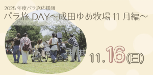 This year, we once again provided medical staff support for “Para-Travel” (Para-Tabi), an initiative organized by the NPO Origami. “Para-Travel” is an event where diverse groups of people, including those who find it difficult to go out due to disabilities, spend a day enjoying themselves together. In its 5th year, this installment was held on November 16, 2025, as an excursion to Narita Dream Dairy Farm (Narita Yume Bokujo), with a total of 300 participants. In Para-Travel, individuals with disabilities and student volunteers participate in sightseeing and events together. Whether you have a disability or not, participants share the simple