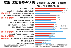 その結果から、1. 調査を実施した支援団体を利用する若者は、全国調査の若者と比較し、自己肯定感や自己有用感が低い傾向にあった。また、愛情を感じることが少なく、孤独を感じている者が多い傾向にあった。2. 支援団体が、利用者に対して精神的な安らぎや、就職や医療など実生活上の支援をもたらす可能性が示された。